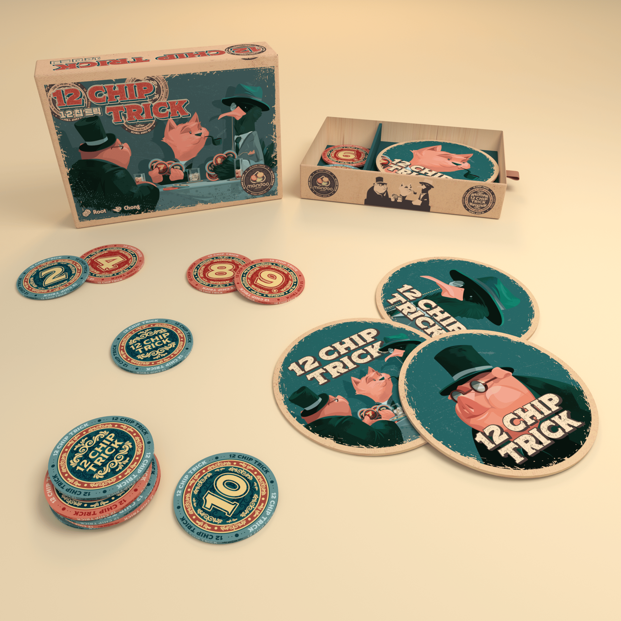 12 Chip Trick is a part of the "PGC Presents" line, a curated selection of games that are harder to find, recommended by us, or are the releases of a fellow independent publishing company or designers that we respect. "PGC Presents" is a project to help boost the signal of other creators that we love to support and think others might as well. PGC Presents releases are not guaranteed to have English rules.