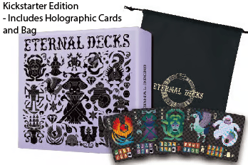 KICKSTARTER EDITION: This includes the base game, 24 holographic cards for the Eternals (these replace those in the game), and a free Kickstarter limited edition pouch,.
