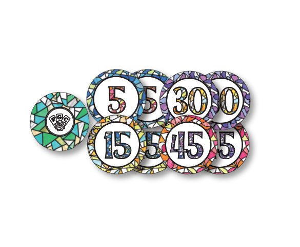 Custom ceramic poker chips are designed as an upgrade component for Haggis. These will replace the bet cards from the base game.