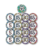 This is for 4 sets (a total of 16 chips: 4x 5 chips, 4x 15 chips, 4x 30 chips, and 4x 45 chips).