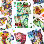 Stonks is a trick-taking and stock market game. One of the players leads the trick by playing a card and everyone must follow suit. Whoever played the highest card wins the trick and chooses one of the played cards to put in their wallet. All cards have shares, which will yield victory points according to the company's market value. Some cards, when used, allow the player to modify a company's stock exchange rate, either in his favor or to ruin their opponent's dreams. After all cards are used, the player with the most victory points is the winner.