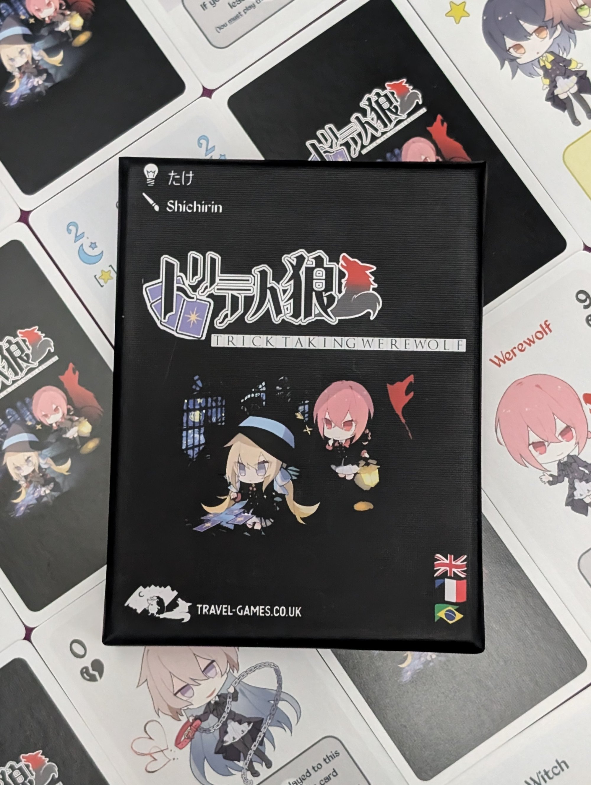 Trick-Taking Werewolf is the debut title from Travel-Games.co.uk, showcasing the innovative game designs emerging from the Tokyo Game Market. Originally released at the Spring 2024 Tokyo Game Market, the game faced accessibility challenges due to text-heavy cards. However, we’ve enhanced the production quality and made it fully accessible for play in English, French, and Brazilian Portuguese.
