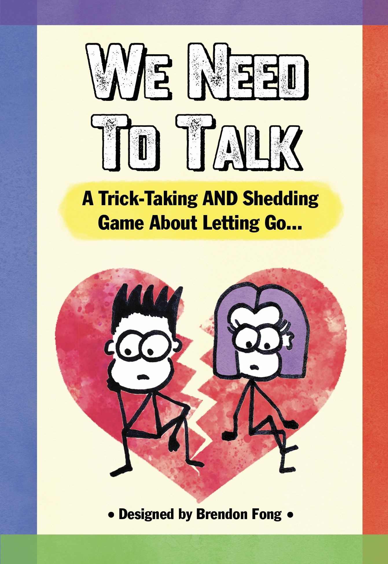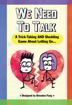 We Need To Talk is both a trick-taking AND climbing/shedding game about a doomed relationship (Wow! Spoiler alert!). Taking tricks to build a hand, players will collect memories in the first half of each round, then they'll try their best to forget them while climbing/shedding in the next. Will you be the first to move on with your life? Uh, we'll see about that!